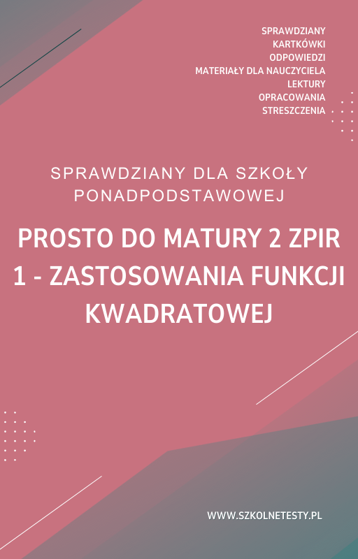 Co zawiera sprawdzian: 1. Zastosowania funkcji kwadratowej SPRAWDZIAN ODPOWIEDZI Prosto do matury 2 Zakres podstawowy i rozszerzony?