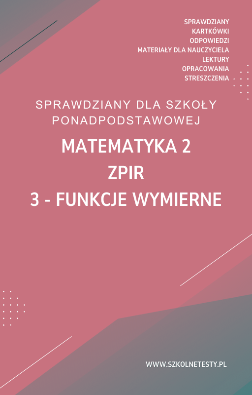 Co zawiera sprawdzian: 3. Funkcje wymierne SPRAWDZIAN ODPOWIEDZI MATeMAtyka 2 Zakres podstawowy i rozszerzony?