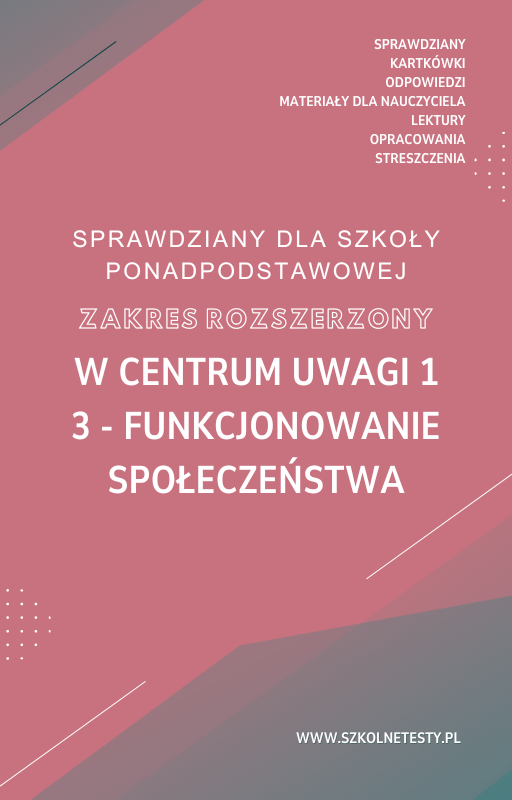 3. Funkcjonowanie społeczeństwa SPRAWDZIAN ODPOWIEDZI W centrum uwagi 1 Zakres rozszerzony to świetna pomoc dla uczniów, którzy przygotowują się do testu. Zawiera pełne odpowiedzi, co umożliwia samodzielne sprawdzenie wyników i lepsze zrozumienie materiału. Idealne narzędzie zarówno do nauki, jak i powtórek przed egzaminami, wspierające uczniów, nauczycieli oraz rodziców.