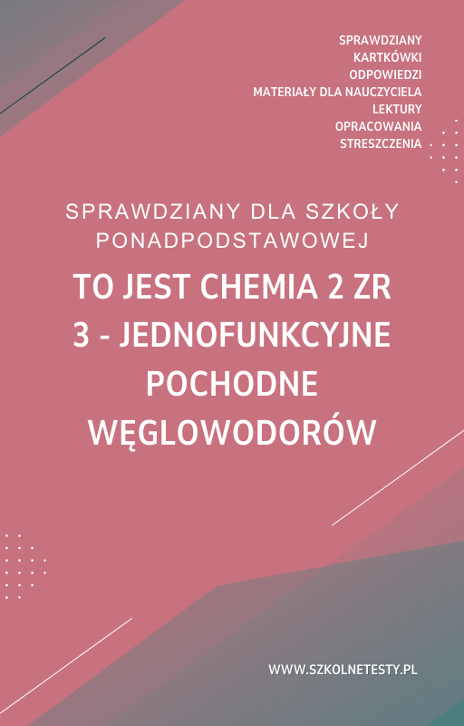Co zawiera sprawdzian: 3. Jednofunkcyjne pochodne węglowodorów SPRAWDZIAN ODPOWIEDZI To jest chemia 2 Zakres rozszerzony?