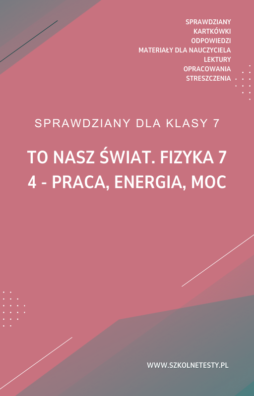 Co zawiera sprawdzian: 4. Praca, energia, moc SPRAWDZIAN ODPOWIEDZI To nasz świat. Fizyka 7?