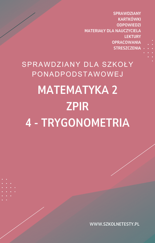 Co zawiera sprawdzian: 4. Trygonometria SPRAWDZIAN ODPOWIEDZI MATeMAtyka 2 Zakres podstawowy i rozszerzony?