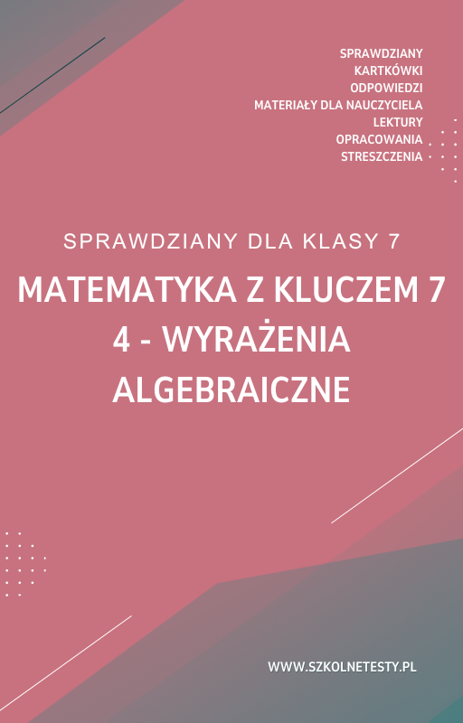 Co zawiera sprawdzian: 4. Wyrażenia algebraiczne SPRAWDZIAN ODPOWIEDZI Matematyka z kluczem 7?