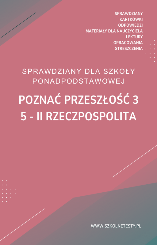 5. II Rzeczpospolita SPRAWDZIAN ODPOWIEDZI Poznać przeszłość 3 to świetna pomoc dla uczniów, którzy przygotowują się do testu. Zawiera pełne odpowiedzi, co umożliwia samodzielne sprawdzenie wyników i lepsze zrozumienie materiału. Idealne narzędzie zarówno do nauki, jak i powtórek przed egzaminami, wspierające uczniów, nauczycieli oraz rodziców.