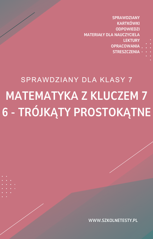 Co zawiera sprawdzian: 6. Trójkąty prostokątne SPRAWDZIAN ODPOWIEDZI Matematyka z kluczem 7?