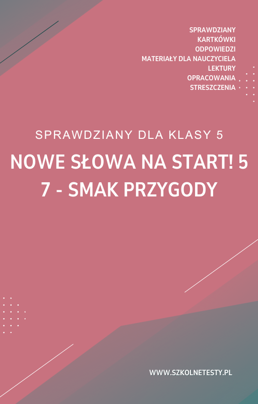 7. Smak przygody SPRAWDZIAN ODPOWIEDZI NOWE Słowa na start! 5 to świetna pomoc dla uczniów, którzy przygotowują się do testu. Zawiera pełne odpowiedzi, co umożliwia samodzielne sprawdzenie wyników i lepsze zrozumienie materiału. Idealne narzędzie zarówno do nauki, jak i powtórek przed egzaminami, wspierające uczniów, nauczycieli oraz rodziców.