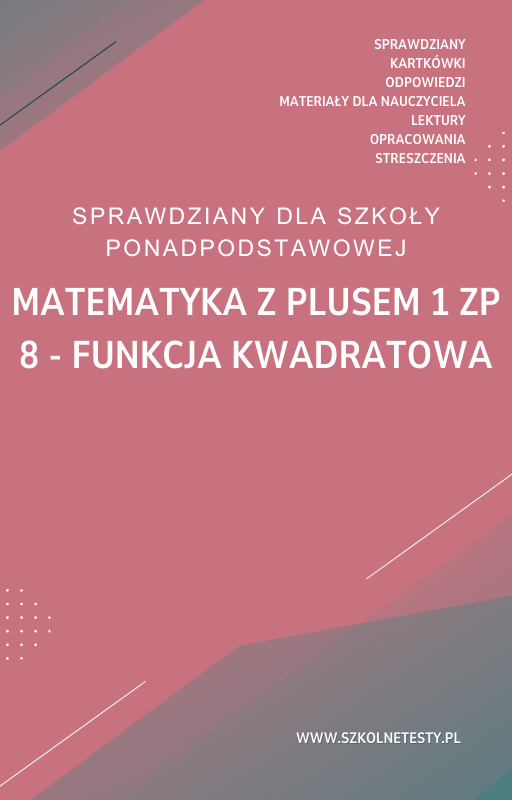Co zawiera sprawdzian: 8. Funkcja kwadratowa SPRAWDZIAN ODPOWIEDZI Matematyka z plusem 1 Zakres podstawowy?