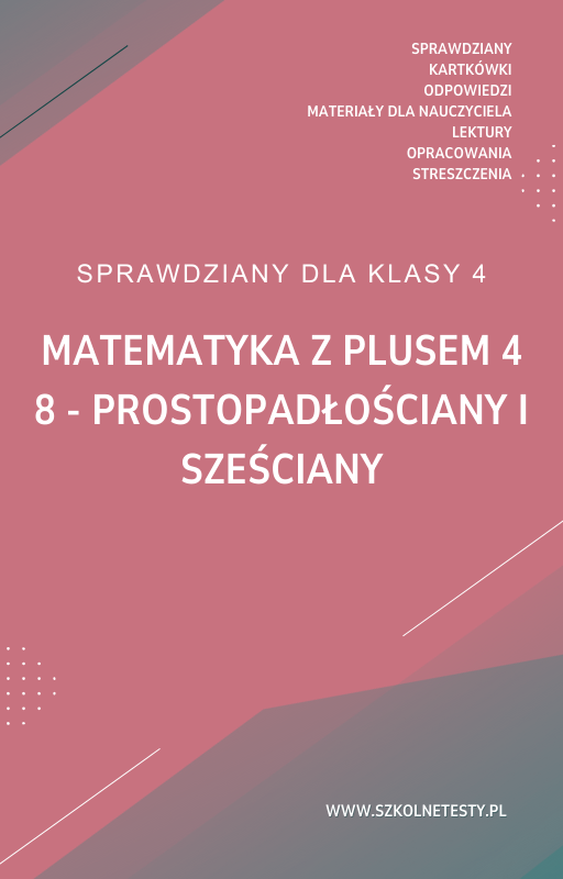 Co zawiera sprawdzian: 8. Prostopadłościany i sześciany SPRAWDZIAN ODPOWIEDZI Matematyka z plusem 4?