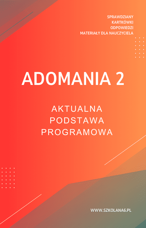 Adomania 2 Sprawdziany – Pobierz teraz! PDF do książki Adomania 2 Sprawdziany z pełnymi odpowiedziami! Idealne wsparcie dla nauczycieli i uczniów, którzy przygotowują się do egzaminów. Pobierz gotowe materiały i popraw efektywność nauczania!