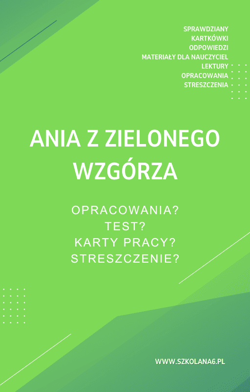 Ania z Zielonego Wzgórza Sprawdziany, Opracowanie, Notatki – Pobierz teraz! PDF do książki Ania z Zielonego Wzgórza Sprawdziany, Opracowanie, Notatki z pełnymi odpowiedziami! Idealne wsparcie dla nauczycieli i uczniów, którzy przygotowują się do egzaminów. Pobierz gotowe materiały i popraw efektywność nauczania!