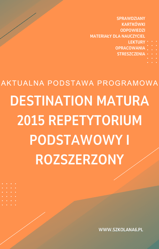 Nie czekaj! Pobierz teraz materiały edukacyjne związane z podręcznikiem „Destination MATURA 2015 REPETYTORIUM Poziom podstawowy i rozszerzony Sprawdziany” ,aby przygotować się do nadchodzących testów. Dzięki naszym pełnym sprawdzianom i odpowiedziom nauka stanie się przyjemnością, a wyniki na pewno Cię zadowolą