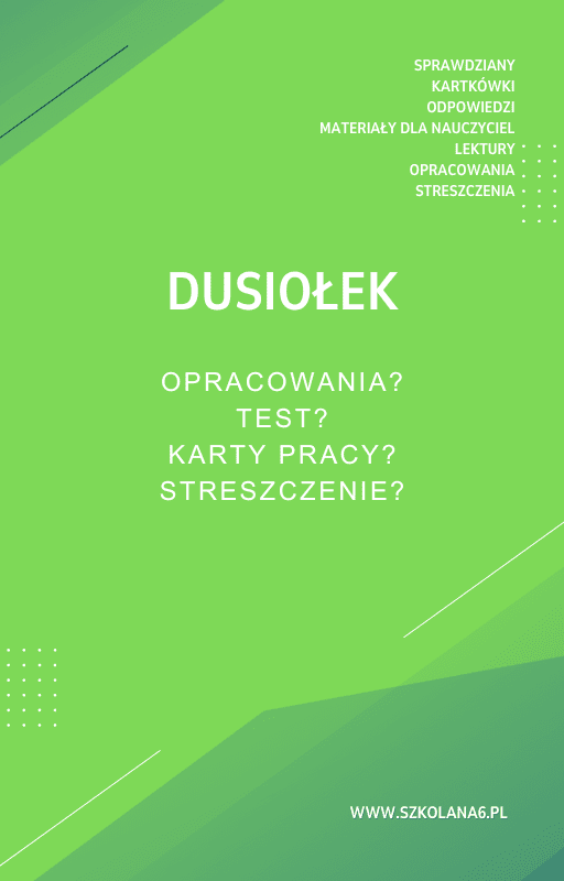 Dusiołek Sprawdziany, Opracowanie, Notatki – Pobierz teraz! PDF do książki Dusiołek Sprawdziany, Opracowanie, Notatki z pełnymi odpowiedziami! Idealne wsparcie dla nauczycieli i uczniów, którzy przygotowują się do egzaminów. Pobierz gotowe materiały i popraw efektywność nauczania!