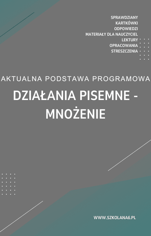 Działania pisemne – mnożenie Sprawdzian Kartkówka – Pobierz teraz! PDF do książki Działania pisemne – mnożenie Sprawdzian Kartkówka z pełnymi odpowiedziami! Idealne wsparcie dla nauczycieli i uczniów, którzy przygotowują się do egzaminów. Pobierz gotowe materiały i popraw efektywność nauczania!