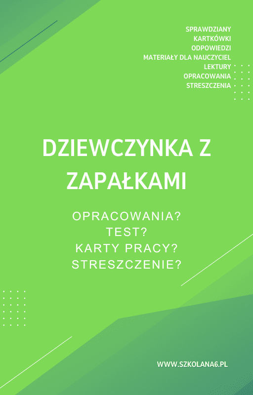 Dziewczynka z zapałkami Sprawdziany, Opracowanie, Notatki – Pobierz teraz! PDF do książki Dziewczynka z zapałkami Sprawdziany, Opracowanie, Notatki z pełnymi odpowiedziami! Idealne wsparcie dla nauczycieli i uczniów, którzy przygotowują się do egzaminów. Pobierz gotowe materiały i popraw efektywność nauczania!