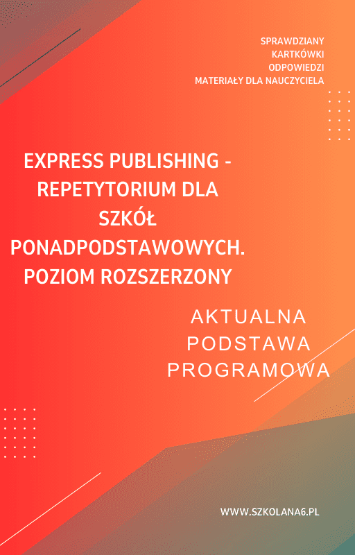 Express Publishing – Repetytorium dla szkół ponadpodstawowych. Poziom rozszerzony Sprawdziany – Pobierz teraz! PDF do książki Express Publishing – Repetytorium dla szkół ponadpodstawowych. Poziom rozszerzony Sprawdziany z pełnymi odpowiedziami! Idealne wsparcie dla nauczycieli i uczniów, którzy przygotowują się do egzaminów. Pobierz gotowe materiały i popraw efektywność nauczania!
