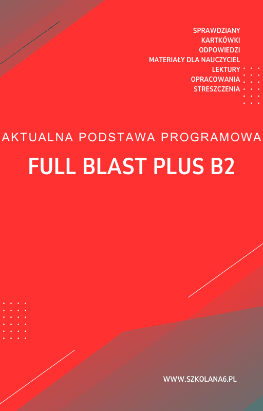 Full Blast Plus B2 Sprawdziany – Pobierz teraz! PDF do książki Full Blast Plus B2 Sprawdziany z pełnymi odpowiedziami! Idealne wsparcie dla nauczycieli i uczniów, którzy przygotowują się do egzaminów. Pobierz gotowe materiały i popraw efektywność nauczania!