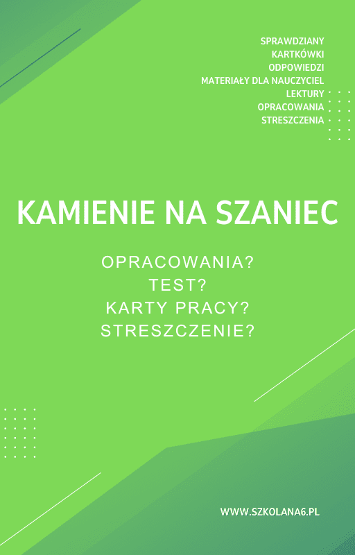 Kamienie na szaniec Sprawdziany, Opracowanie, Notatki – z odpowiedziami w formacie PDF do pobrania. Szukasz wysokiej jakości Kamienie na szaniec Sprawdziany, Opracowanie, Notatki? Oferujemy kompleksowe sprawdziany z pełnymi odpowiedziami, które pomogą Ci w efektywnym przygotowaniu się do egzaminów i lepszym przyswajaniu materiału.