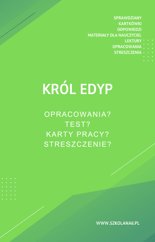 Nasza oferta obejmuje sprawdziany PDF z pełnymi odpowiedziami, które są idealnym rozwiązaniem do samodzielnego nauczania lub jako pomoc dydaktyczna dla nauczycieli. Sprawdziany są w pełni zgodne z książką „Król Edyp Sprawdziany, Opracowanie, Notatki”, a dla nauczycieli przygotowaliśmy również materiały pomocnicze, które ułatwiają prowadzenie lekcji i skuteczne przygotowanie uczniów do egzaminów. Dodatkowo, oferujemy także książkę nauczyciela, która stanowi niezastąpione wsparcie w organizacji zajęć i w udzielaniu pomocy uczniom.