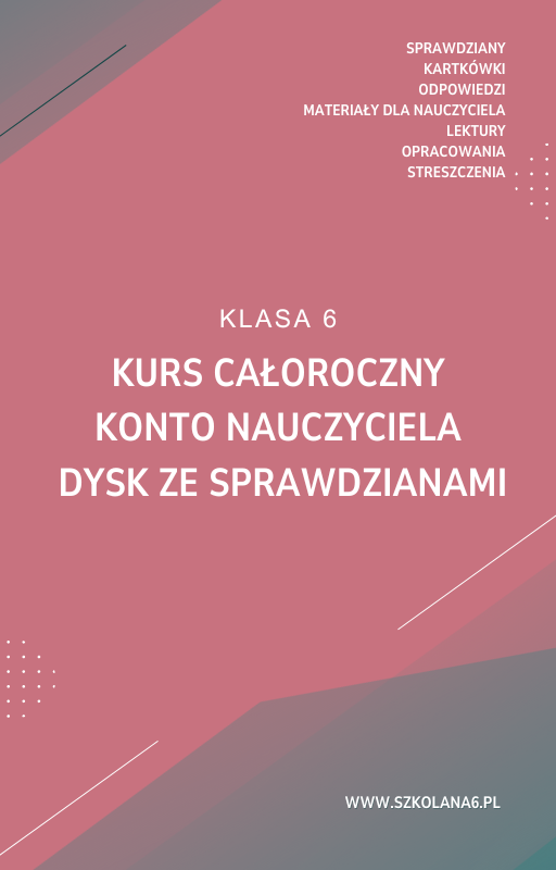 - Kompletny kurs całoroczny, obejmujący sprawdziany, kartkówki i ćwiczenia dla klasy 6.