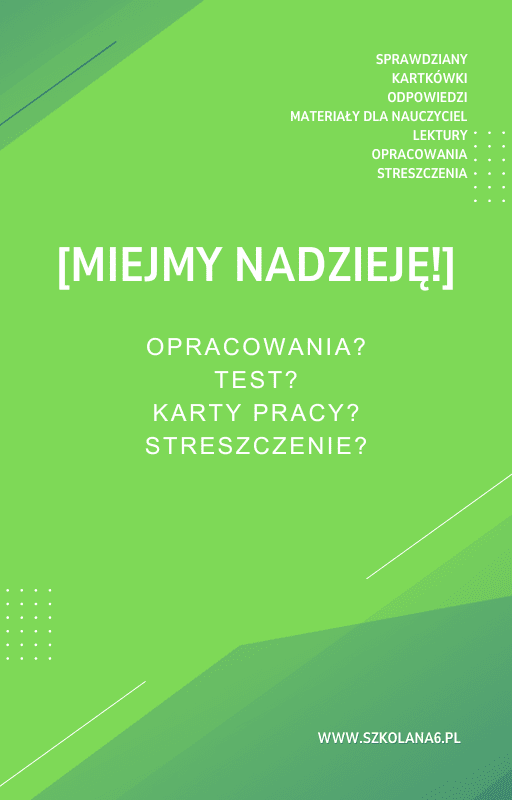 [Miejmy nadzieję!] Sprawdziany, Opracowanie, Notatki – Pobierz teraz! PDF do książki [Miejmy nadzieję!] Sprawdziany, Opracowanie, Notatki z pełnymi odpowiedziami! Idealne wsparcie dla nauczycieli i uczniów, którzy przygotowują się do egzaminów. Pobierz gotowe materiały i popraw efektywność nauczania!