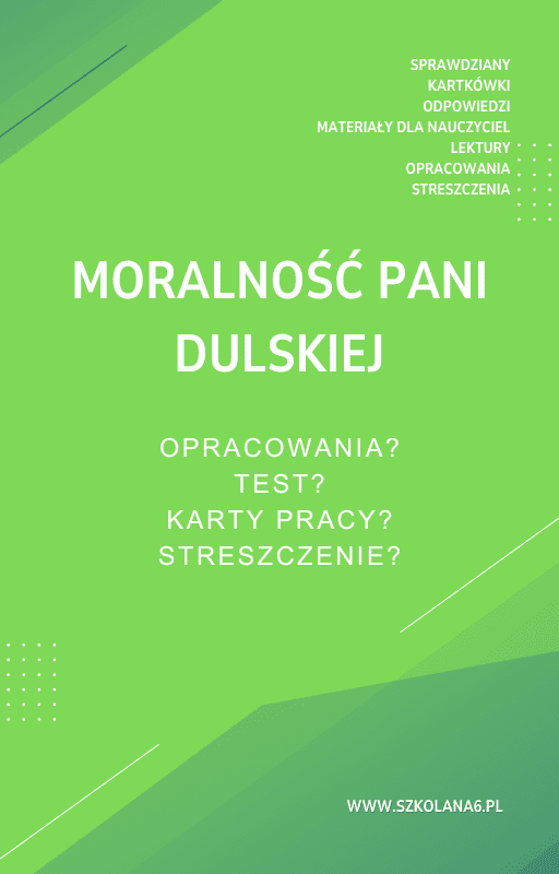 Moralność Pani Dulskiej Sprawdziany, Opracowanie, Notatki – Pobierz teraz! PDF do książki Moralność Pani Dulskiej Sprawdziany, Opracowanie, Notatki z pełnymi odpowiedziami! Idealne wsparcie dla nauczycieli i uczniów, którzy przygotowują się do egzaminów. Pobierz gotowe materiały i popraw efektywność nauczania!