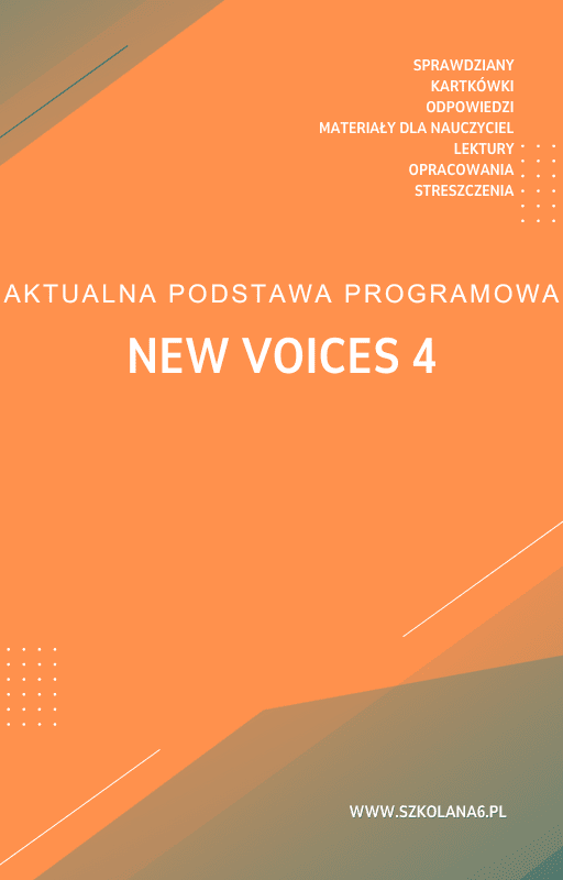 New Voices 4 Sprawdziany – Pobierz teraz! PDF do książki New Voices 4 Sprawdziany z pełnymi odpowiedziami! Idealne wsparcie dla nauczycieli i uczniów, którzy przygotowują się do egzaminów. Pobierz gotowe materiały i popraw efektywność nauczania!