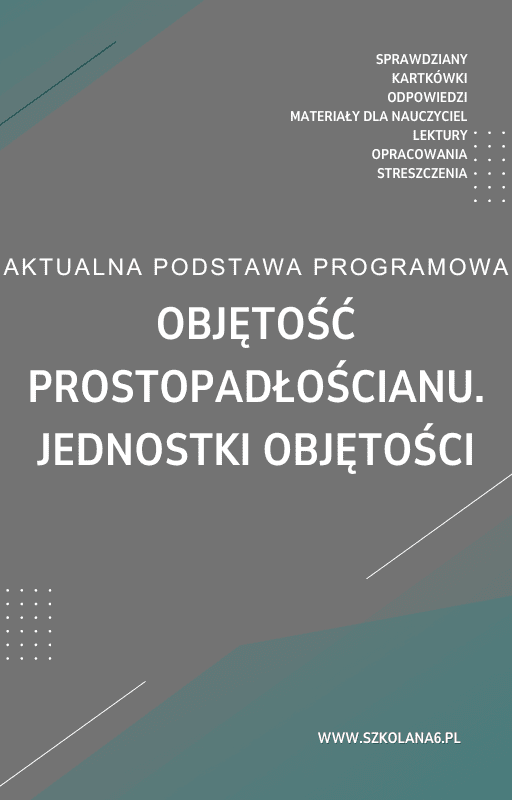 Objętość prostopadłościanu. Jednostki objętości. Sprawdzian Kartkówka – Pobierz teraz! PDF do książki Objętość prostopadłościanu. Jednostki objętości. Sprawdzian Kartkówka z pełnymi odpowiedziami! Idealne wsparcie dla nauczycieli i uczniów, którzy przygotowują się do egzaminów. Pobierz gotowe materiały i popraw efektywność nauczania!