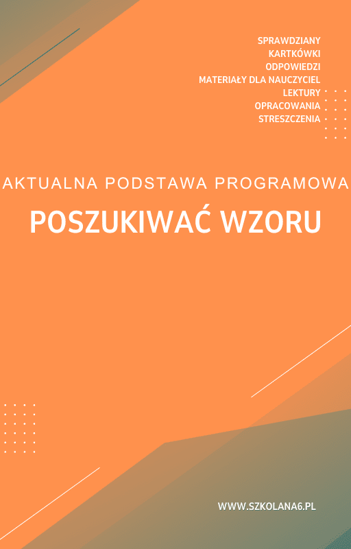 Poszukiwać wzoru Sprawdzian Kartkówka – Pobierz teraz! PDF do książki Poszukiwać wzoru Sprawdzian Kartkówka z pełnymi odpowiedziami! Idealne wsparcie dla nauczycieli i uczniów, którzy przygotowują się do egzaminów. Pobierz gotowe materiały i popraw efektywność nauczania!