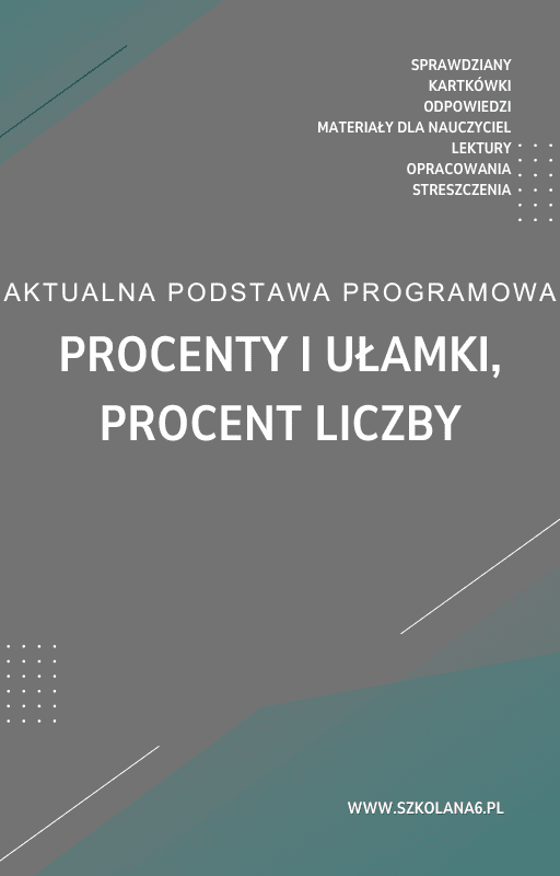 Procenty i ułamki, procent liczby Sprawdzian Kartkówka – Pobierz teraz! PDF do książki Procenty i ułamki, procent liczby Sprawdzian Kartkówka z pełnymi odpowiedziami! Idealne wsparcie dla nauczycieli i uczniów, którzy przygotowują się do egzaminów. Pobierz gotowe materiały i popraw efektywność nauczania!