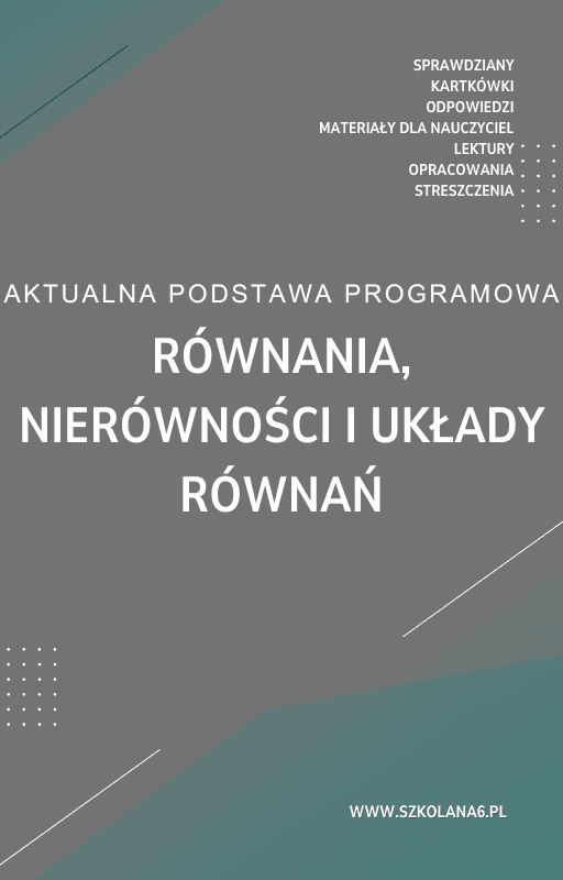 Równania, nierówności i układy równań Sprawdzian Kartkówka – Pobierz teraz! PDF do książki Równania, nierówności i układy równań Sprawdzian Kartkówka z pełnymi odpowiedziami! Idealne wsparcie dla nauczycieli i uczniów, którzy przygotowują się do egzaminów. Pobierz gotowe materiały i popraw efektywność nauczania!