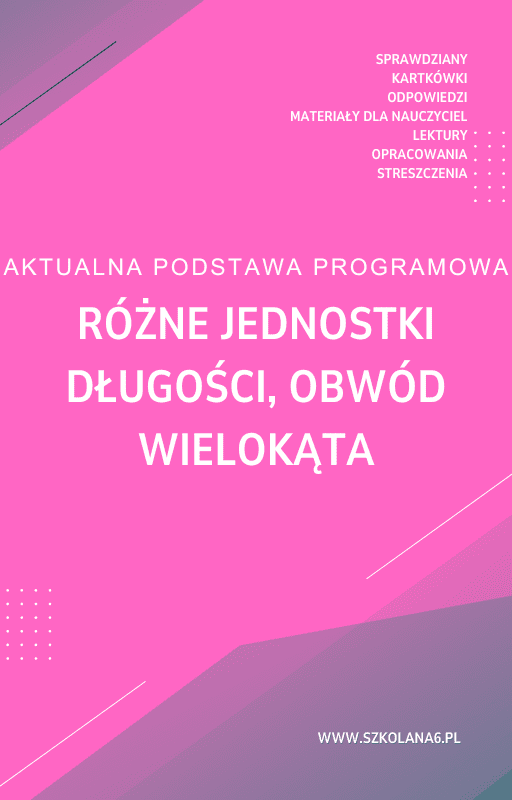 Różne jednostki długości, obwód wielokąta Sprawdzian Kartkówka – Pobierz teraz! PDF do książki Różne jednostki długości, obwód wielokąta Sprawdzian Kartkówka z pełnymi odpowiedziami! Idealne wsparcie dla nauczycieli i uczniów, którzy przygotowują się do egzaminów. Pobierz gotowe materiały i popraw efektywność nauczania!