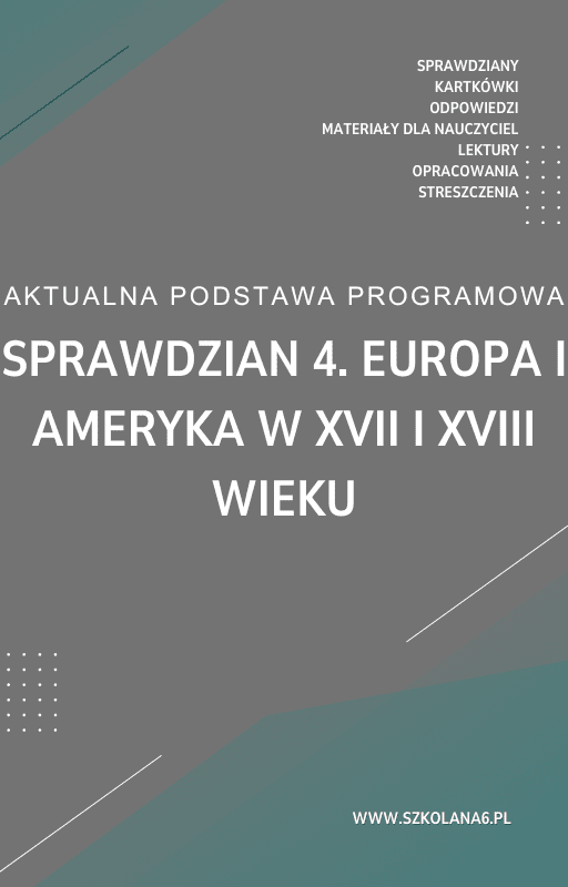 Sprawdzian 4. Europa i Ameryka w XVII i XVIII wieku Kartkówka – Pobierz teraz! PDF do książki Sprawdzian 4. Europa i Ameryka w XVII i XVIII wieku Kartkówka z pełnymi odpowiedziami! Idealne wsparcie dla nauczycieli i uczniów, którzy przygotowują się do egzaminów. Pobierz gotowe materiały i popraw efektywność nauczania!