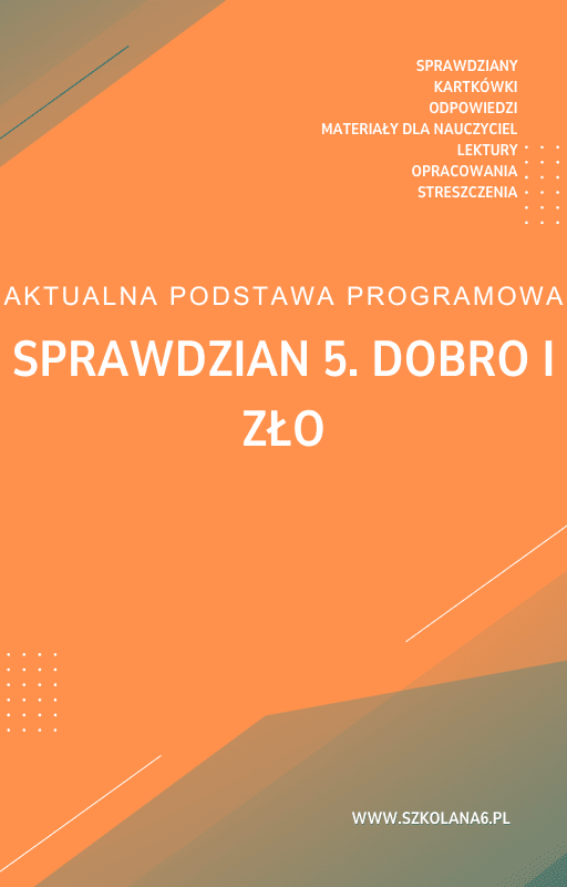 Sprawdzian 5. Dobro i zło Kartkówka – Pobierz teraz! PDF do książki Sprawdzian 5. Dobro i zło Kartkówka z pełnymi odpowiedziami! Idealne wsparcie dla nauczycieli i uczniów, którzy przygotowują się do egzaminów. Pobierz gotowe materiały i popraw efektywność nauczania!