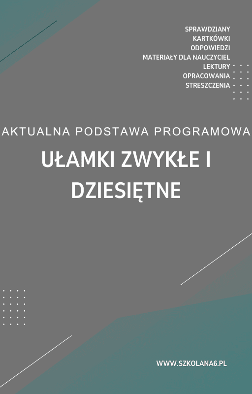 Ułamki zwykłe i dziesiętne Sprawdzian Kartkówka – Pobierz teraz! PDF do książki Ułamki zwykłe i dziesiętne Sprawdzian Kartkówka z pełnymi odpowiedziami! Idealne wsparcie dla nauczycieli i uczniów, którzy przygotowują się do egzaminów. Pobierz gotowe materiały i popraw efektywność nauczania!