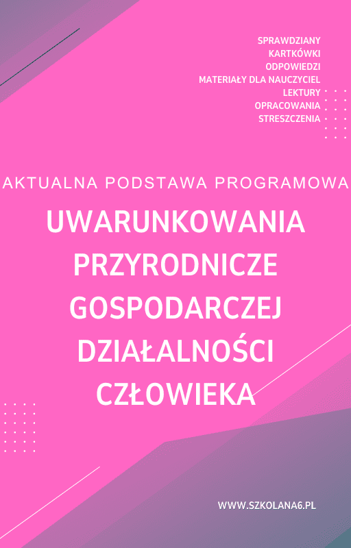 Uwarunkowania przyrodnicze gospodarczej działalności człowieka Sprawdzian Kartkówka – Pobierz teraz! PDF do książki Uwarunkowania przyrodnicze gospodarczej działalności człowieka Sprawdzian Kartkówka z pełnymi odpowiedziami! Idealne wsparcie dla nauczycieli i uczniów, którzy przygotowują się do egzaminów. Pobierz gotowe materiały i popraw efektywność nauczania!