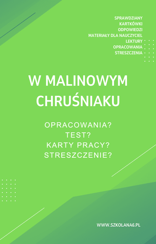 W malinowym chruśniaku Sprawdziany, Opracowanie, Notatki – Pobierz teraz! PDF do książki W malinowym chruśniaku Sprawdziany, Opracowanie, Notatki z pełnymi odpowiedziami! Idealne wsparcie dla nauczycieli i uczniów, którzy przygotowują się do egzaminów. Pobierz gotowe materiały i popraw efektywność nauczania!