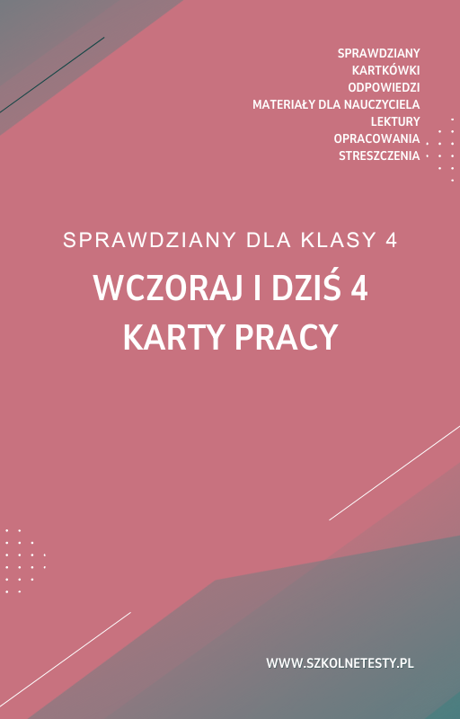 Wczoraj i dziś 4 Karty pracy to świetna pomoc dla uczniów, którzy przygotowują się do testu. Zawiera pełne odpowiedzi, co umożliwia samodzielne sprawdzenie wyników i lepsze zrozumienie materiału. Idealne narzędzie zarówno do nauki, jak i powtórek przed egzaminami, wspierające uczniów, nauczycieli oraz rodziców.