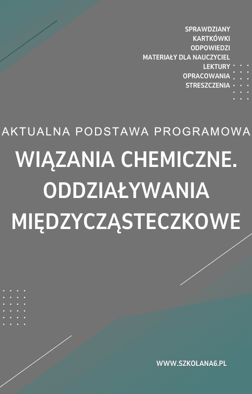 Wiązania chemiczne. Oddziaływania międzycząsteczkowe Sprawdzian Kartkówka – Pobierz teraz! PDF do książki Wiązania chemiczne. Oddziaływania międzycząsteczkowe Sprawdzian Kartkówka z pełnymi odpowiedziami! Idealne wsparcie dla nauczycieli i uczniów, którzy przygotowują się do egzaminów. Pobierz gotowe materiały i popraw efektywność nauczania!