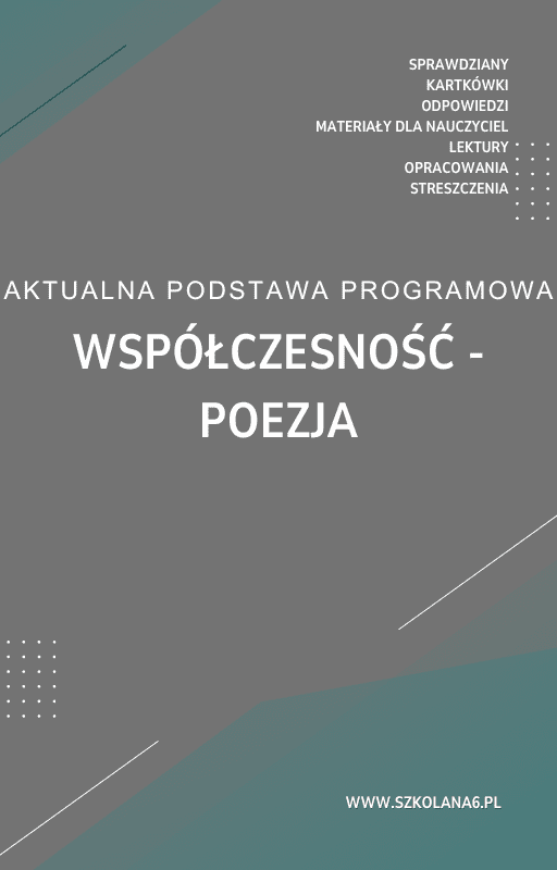 Współczesność – poezja Sprawdzian Kartkówka – Pobierz teraz! PDF do książki Współczesność – poezja Sprawdzian Kartkówka z pełnymi odpowiedziami! Idealne wsparcie dla nauczycieli i uczniów, którzy przygotowują się do egzaminów. Pobierz gotowe materiały i popraw efektywność nauczania!