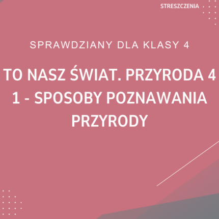 1. Sposoby poznawania przyrody SPRAWDZIAN ODPOWIEDZI To nasz świat. Przyroda 4
